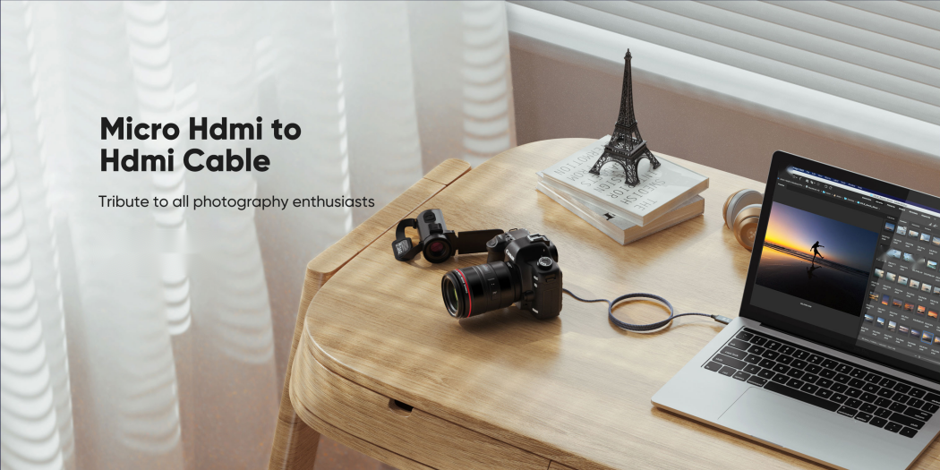 4K Micro HDMI to HDMI Male Cable Adapter, 4K@60Hz HDR Nylon Braid Cord for GoPro Hero, Zfc, RPi, A6000, A6300, Camera, Video Capture Card, Grey 3FT